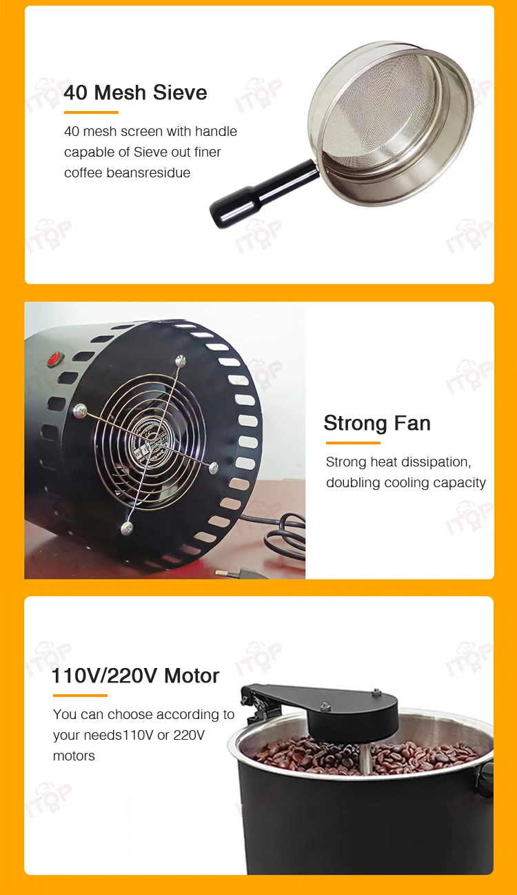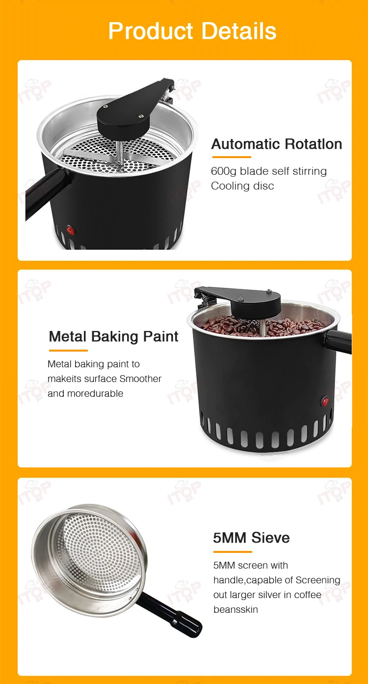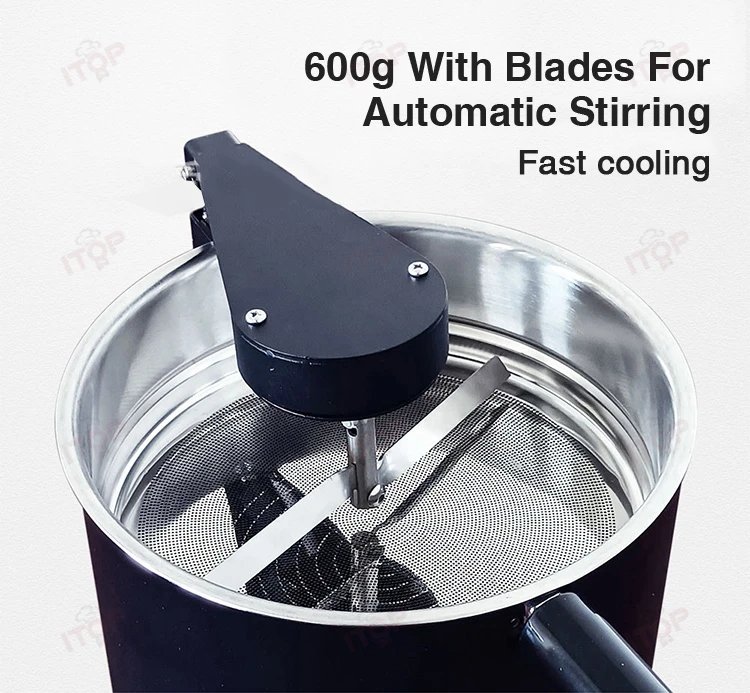5. With automatic rotation of the stirring leaf, more rapid heat dissipation, cooling coffee beans.